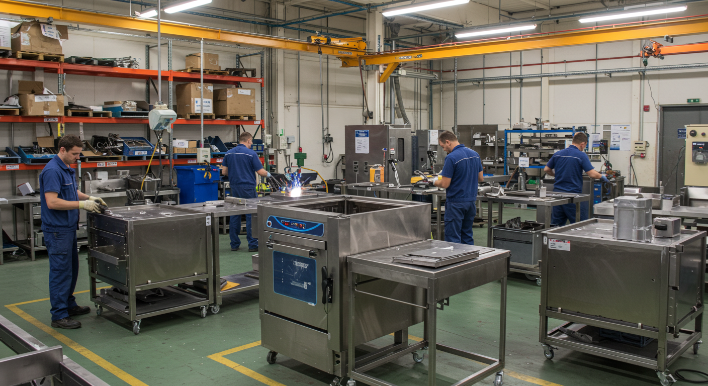 業務用厨房機器は、ユーザーとなる店舗や施設のレイアウトやコンセプト、メニューに応じて設計や仕様が変わることが多く、カスタマイズ対応が求められるケースが少なくありません。このため、多品種少量生産の比率が高く、標準化が難しいという特徴があります。メーカーとしては柔軟な生産管理や設計ノウハウが求められ、場合によっては工場を複数拠点に分散して対応するなど、体制面でもさまざまな工夫がなされています。